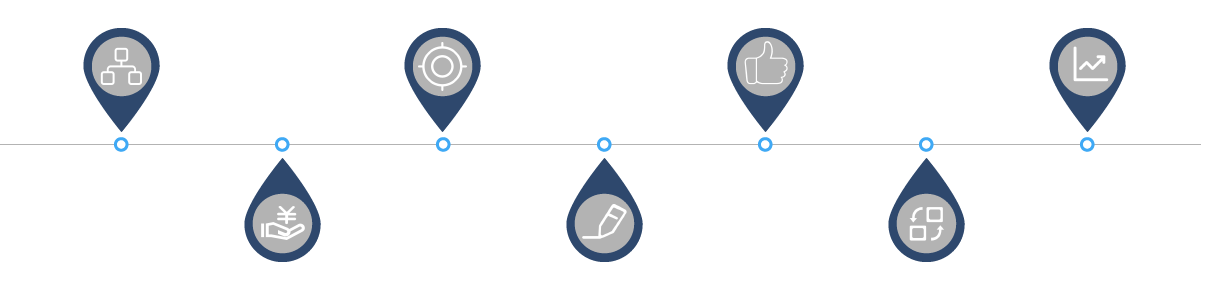 - 每周、每個節點、每月都會有定時的數據報表及匯報溝通,讓企業時時掌握項目進度。